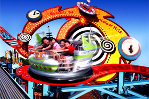 Choose your dinosaur and fly high in the skies on a carnival-themed ride.